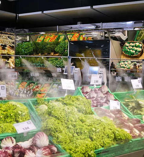 Wasservernebelung im Lebensmittelbereich machen die Produkte länger haltbar und geniesbar.