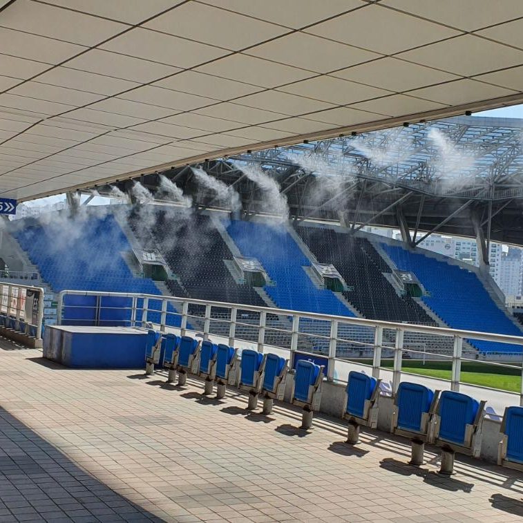 Einige Stadion in Italien sind ebenfalls mit unseren Wasservernebelungsanlagen ausgestattet und in Asien wie hier in Südkorea